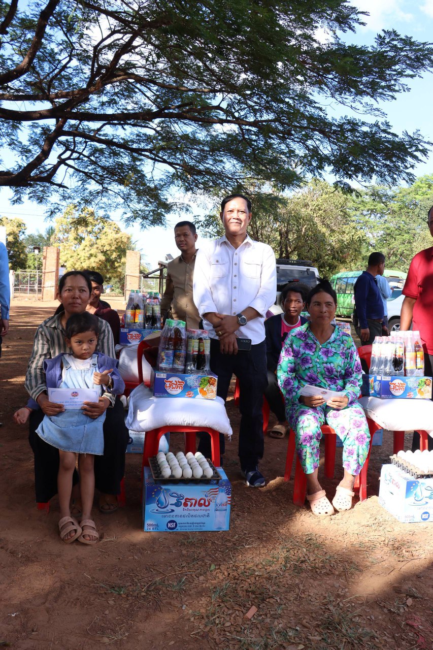 សូមបញ្ជាក់ផងដែរថាក្នុងពិធីនោះ ឧត្តមសេនីយ៍ត្រី មាស យ៉ត មេបញ្ជាការកងរាជអាវុធហត្ថខេត្តកំពង់ធំ បានឧបត្ថម្ភស្បៀងសម្ភារៈគ្រឿងឧបភោគបរិភោគ ជូនដល់គ្រួសារយោធិន និងបងប្អូនភៀសសឹកចំនួន២០គ្រួសាររួមមាន÷ វីរៈកងទ័ពដែលត្រូវរបួស និងផ្សែងពុលចំនួន ០៣នាក់ ក្នុង១នាក់ទទួលបាននូវ÷ អង្ករ២០គីឡូក្រាមទឹកត្រី១យួរ ទឹកសុីអុីវ១យួរ ពងទា១សាង ទឹកសុទ្ធ១កេស មីជាតិ១កេស និងថវិកា៤០០.០០០រៀលសរុប១,២០០.០០០រៀល។ គ្រួសារជនភៀសសឹក ១៧គ្រួសារ ក្នុង១គ្រួសារទទួលបាននូវ÷ អង្ករ២០គីឡូក្រាម ទឹកត្រី១យួរ ទឹកសុីអុីវ១យួរ ពងទា១សាង មីជាតិ១កេស ទឹកសុទ្ធ១កេស ថវិកា ៥០.០០០រៀល នឹងថវិកាបន្ថែមលើកទឹកចិត្តគ្រួសារកងទ័ព១គ្រួសារចំនួន ៨០,០០០រៀល សរុបថវិកា ៩៣០,០០០រៀល ។ សរុបថវិកា២,១៣០,០០០រៀល ។ ព្រមទាំងប្រគល់សម្ភាររួមមាន÷ អង្ករ១២០គីឡូក្រាម ទឹកត្រី៦យួរ ទឹកស៊ីអ៊ីវ ៦យួរ មីជាតិ ៦កេស ពងទា៦សាង ទឹកសុទ្ធ៦កេស ថវិកា៦៥០,០០០រៀល ទុកសម្រាប់ជូនដល់ជនភៀសសឹកជំលៀសបន្តទៀត។ សរុបថវិកាទាំងអស់២,៧៨០,០០០រៀល។